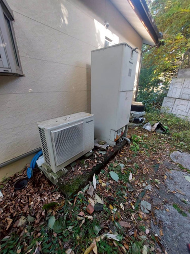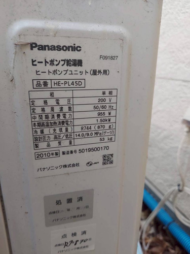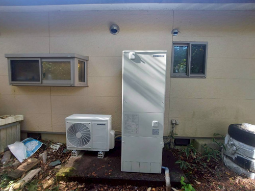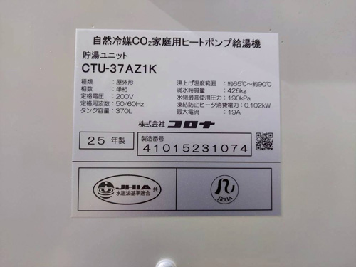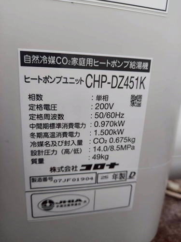 南国市後免町 パナソニックヒートポンプ給湯機ヒートポンプユニット(屋外用)HE-PL45D→コロナ自然冷媒CO2家庭用ヒートポンプ給湯機ヒートポンプユニットCHP-DZ451K、貯湯ユニットCTU-37AZ1K エコキュート交換工事